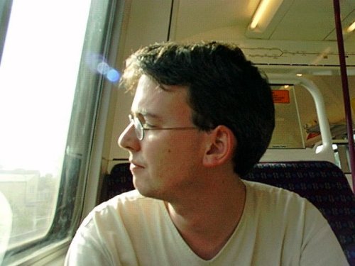 Andrea on the tube train (Waterloo Line) heading North somewhere past Finchley Road.